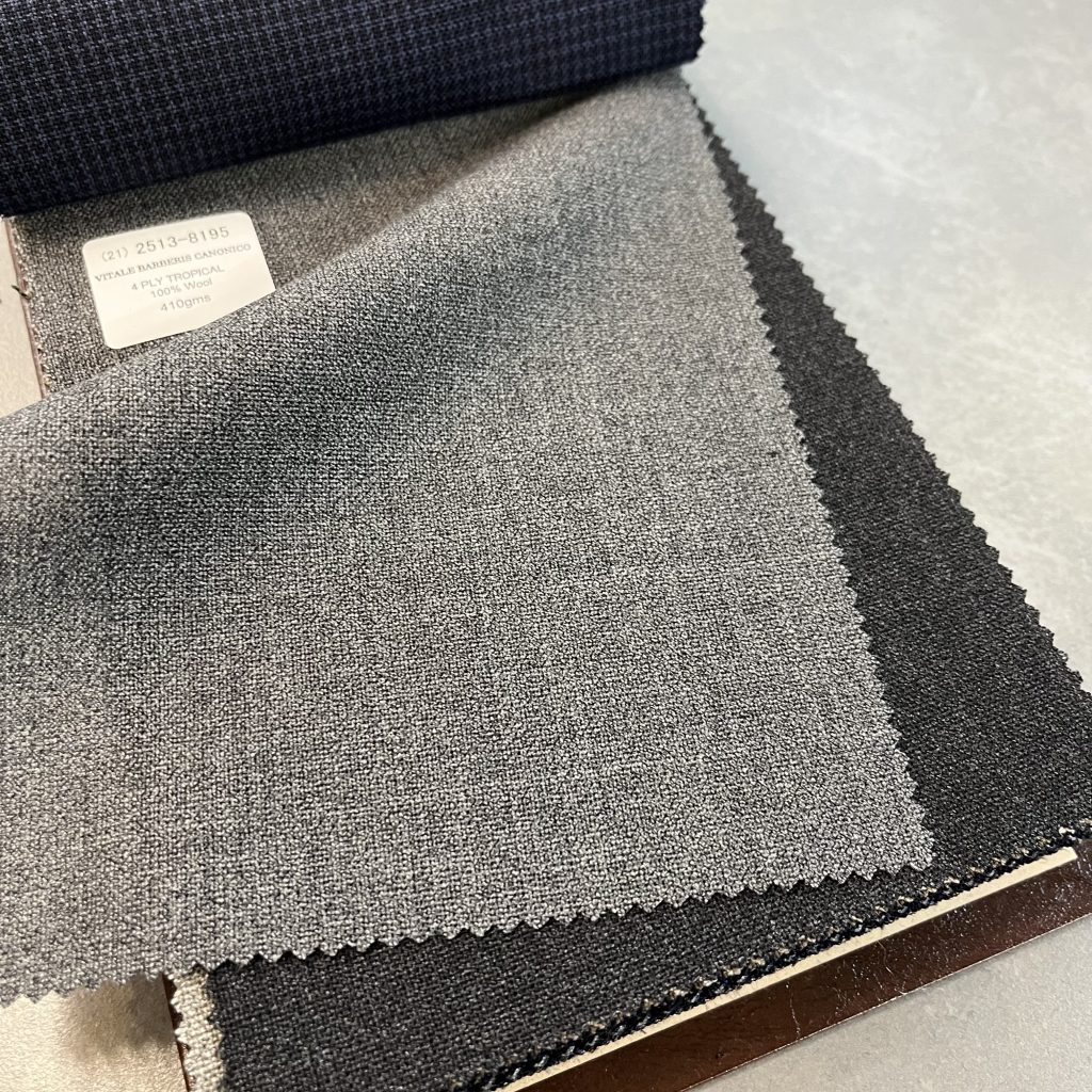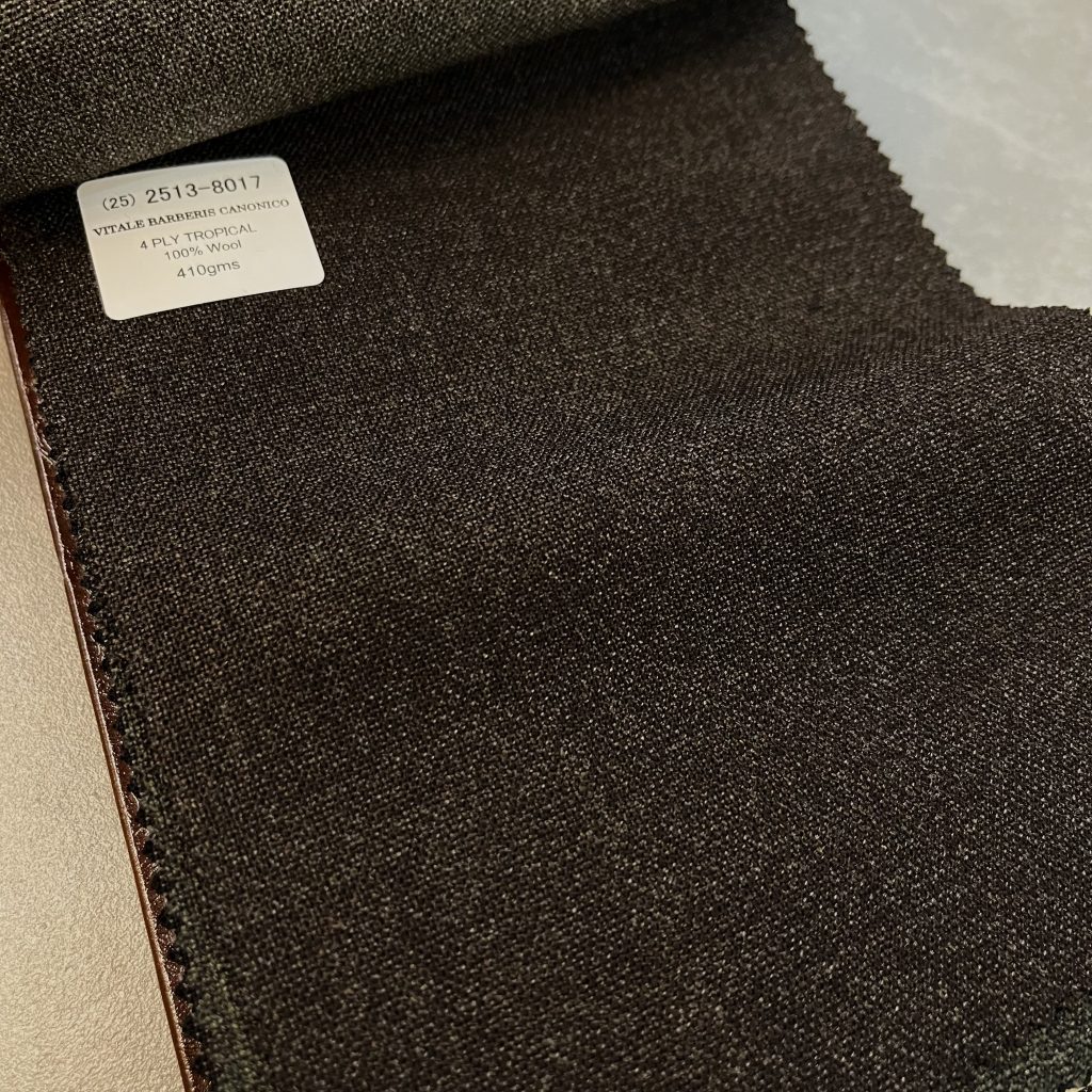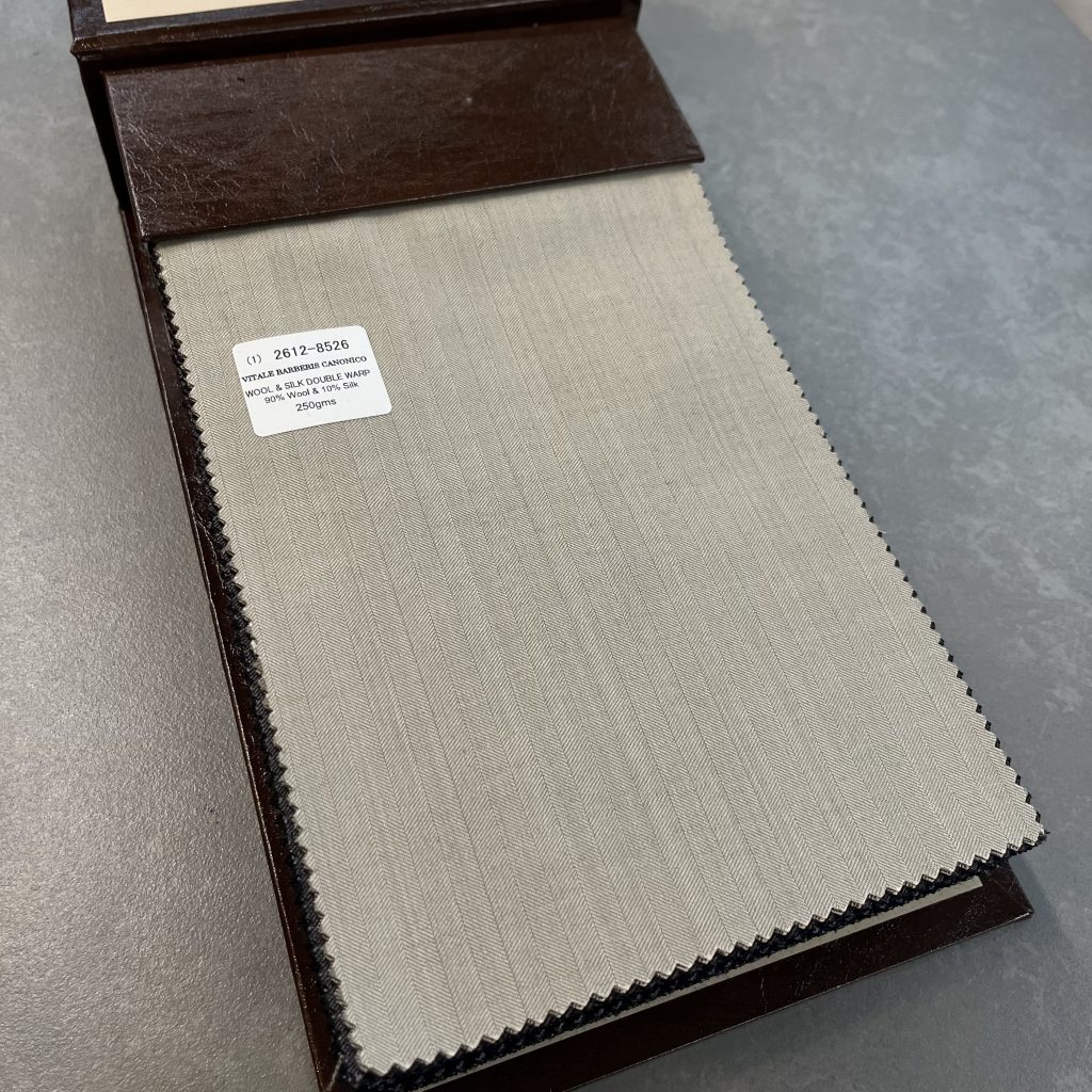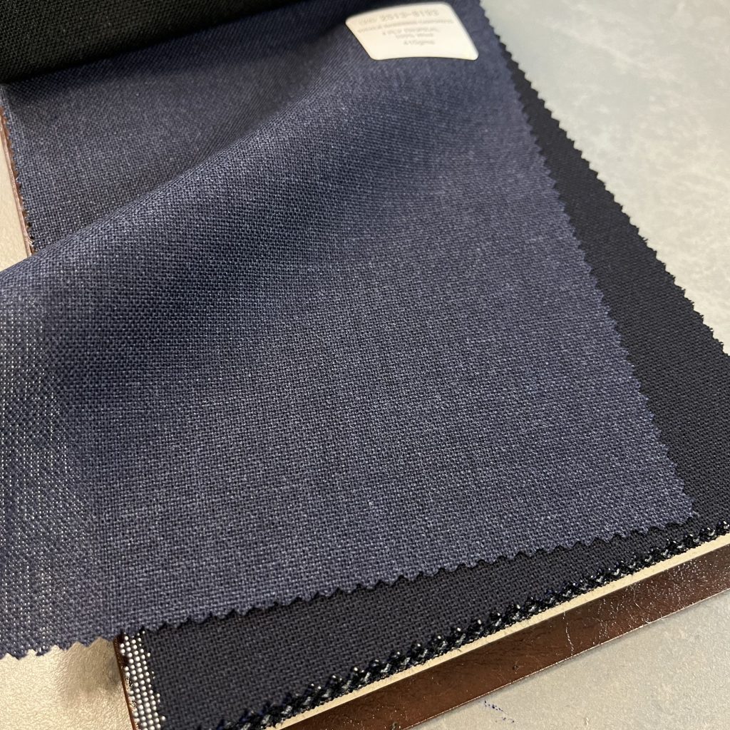 目付 410g / M と非常にヘビー且つ、服地の使用する糸の撚り係数が非常にハイツイストですので、ゆったりとしたシルエットでお仕立てすることをお勧めいたします。