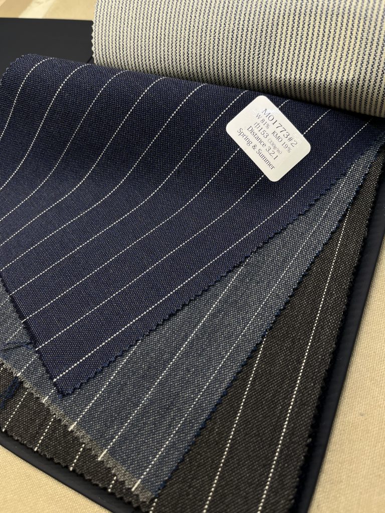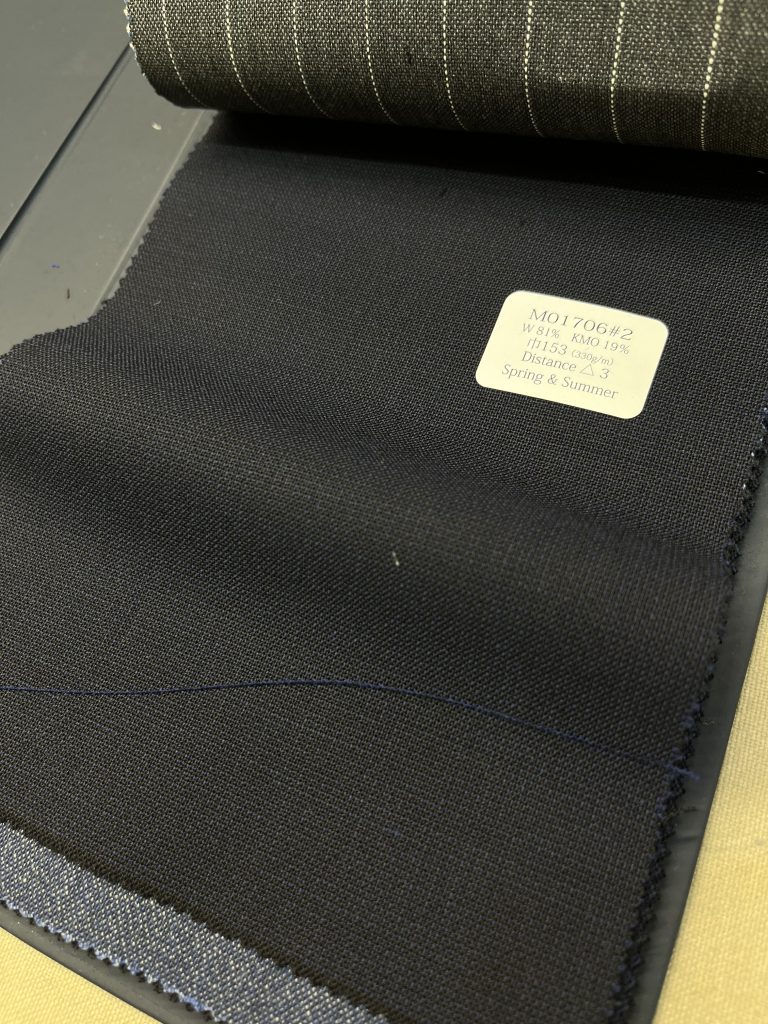 ピックアップした服地(写真)4種は、どれもキッドモヘア(子山羊の毛)を混紡していますが、モヘア特有の張りを保ちながらも弾力があり、ウールの膨らみがとても心地よい着心地だと私自身も感じております。