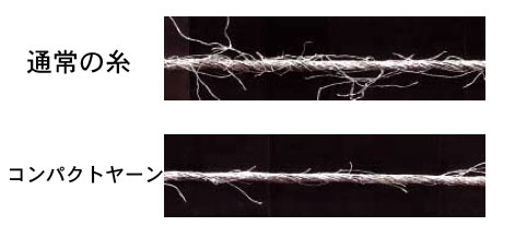 “コンパクトヤーン” は紡績の過程でこのスケール押さえ込んで糸を撚る(よる)ことで、シルクのような滑らかなタッチと上品な光沢を生み出す技術。