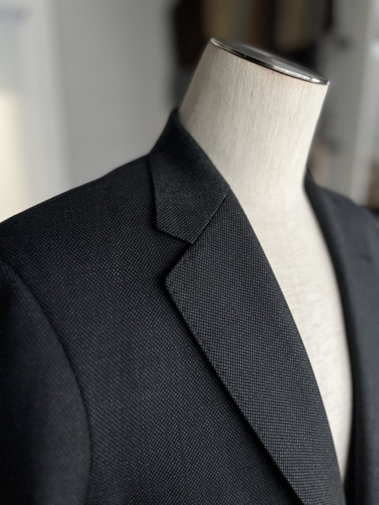 モーニングやタキシードなどをルーツとする、フォーマルなディティールのフロント1釦を採用することで、無駄を削ぎ落とし、洗礼された印象を与えながらも、フォーマルとは少し距離を置くバーズアイを服地に加えることで「Minimal : ミニマル」という個性の中に普遍を表現しました。