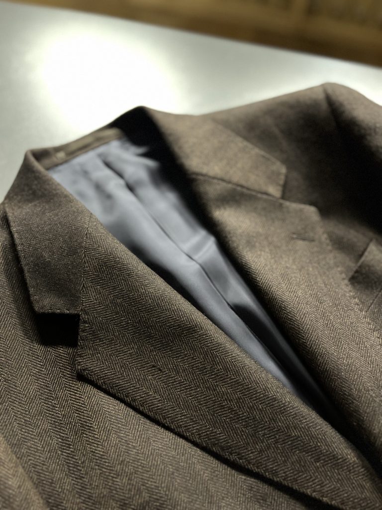 当店ではご納品の際に、しっかりとお時間を頂き、次作に向けて着姿から改善点を詳細に記録を残すのが日常なのですが、2作目のご来店では、着用した感想など念入りにヒアリングさせて頂いております。