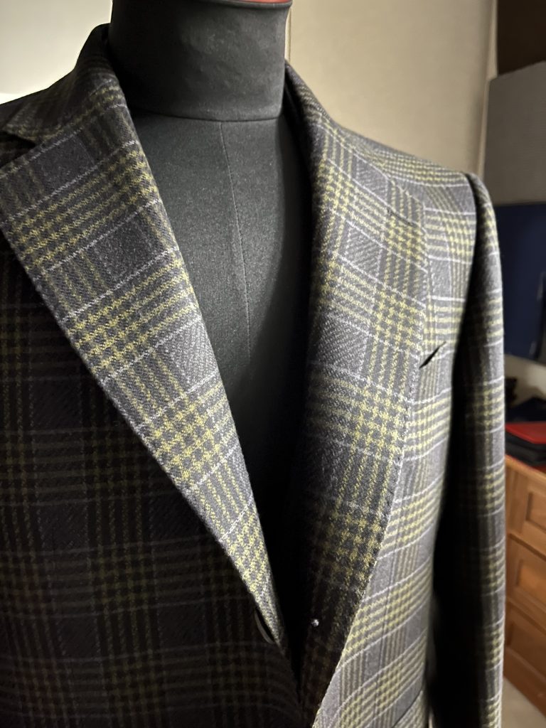 伝統的なカラード・グレンチェックを使用したジャケットのご紹介です。