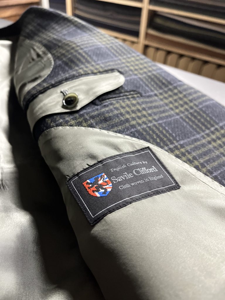 サヴィルクリフォードはイギリス然とした生地物性が特徴のミル(織元)であり、今回のボディも打ち込みの権化のような肉厚で頑丈な一品。