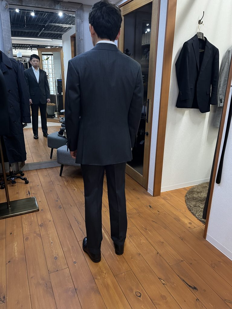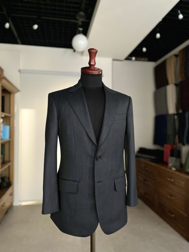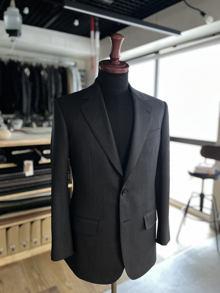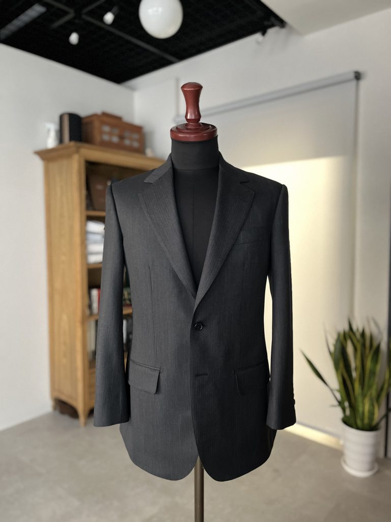 今回は、派手さのない細幅のヘリンボーン × チャコールグレーを服地に選定。