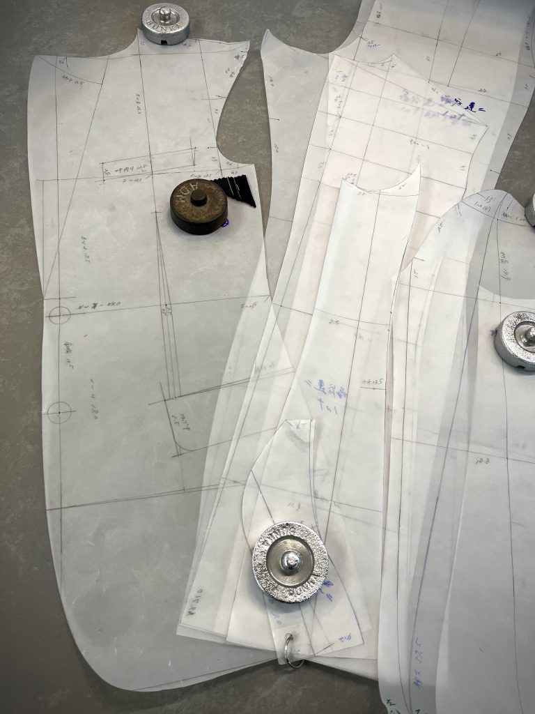 お客様の寸法・体型を基に型紙から製作