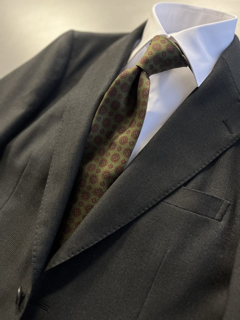 同時にシャツのお仕立てと Albeni 1905 のプリントタイをご提案し、狙い澄ましたコーディネートをお楽しみ頂ければ嬉しく思います。