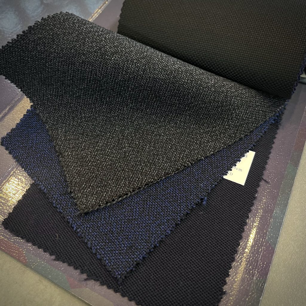 デザインもほぼ一任されておりますので、本件お客様との打ち合わせは、事前にご用意する数種の現物生地と、それぞれの有用性をプレゼンテーションする流れがお決まりです。